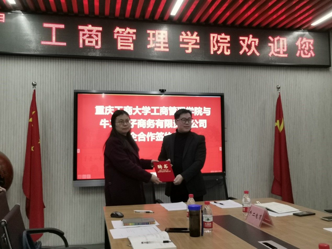邱继勤副经理首先对各位嘉宾的到来表示欢迎,并介绍了学院及市场营销专业的发展现状,指出当下新文科建设背景下传统专业所面临的转型升级挑战。随后邱经理代表公司与牛二电子商务有限责任公司田利伟总经理签订校企合作协议,未来双方将在人才培养、实习实践等方面展开持续合作。刘清华老师介绍了市场营销系与该公司在《新媒体营销》课程中的产教融合课程共建情况,随着校企合作协议的签订,将进一步深化双方在数字营销人才培养上的合作共赢。