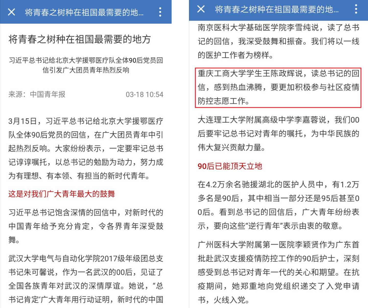 各支部团员认真学习了习近平总书记《在统筹推进新冠肺炎疫情防控和经济社会发展工作部署会议上的讲话》、习近平总书记给在首钢医院实习的西藏大学医学院员工回信与勉励北京大学援鄂医疗队全体“90后”党员回信的重要精神,深刻领悟了总书记所说的“在为人民服务中茁壮成长,在艰苦奋斗中砥砺意志品质,在实践中增长工作本领”的谆谆教诲。青年团员们从不同角度对各自的学习体会进行交流分享,大家纷纷表示,习总书记的回信充分表明了党和国家对青年人的深切关爱和殷切希望,作为生长在新时代的青年团员,我们要牢记习总书记“青年兴,则国家兴;青年强,则国家强”的重要论断,明确时代责任和使命担当,坚持学思结合、学以致用,勤学专业知识,苦练看家本领,为今后国家的建设发展、人民的幸福生活做出积极贡献。与此同时,各支部还向全体团员再次传达和强调了疫情期间学校有关规定,呼吁大家提高政治站位,听党话、跟党走,关注疫情要收听收看官方权威消息,明辨是非曲直,自觉做到不信谣不传谣,传播正能量,弘扬主旋律,与党中央时刻保持高度一致。团员同学们表示,坚决服从学校的安排,宅家不宅志,停课不停学,充分用好宅家时间,认真上好网课,珍惜美好生活,加强体育锻炼,以实际行动力所能及地为抗疫斗争做贡献。
