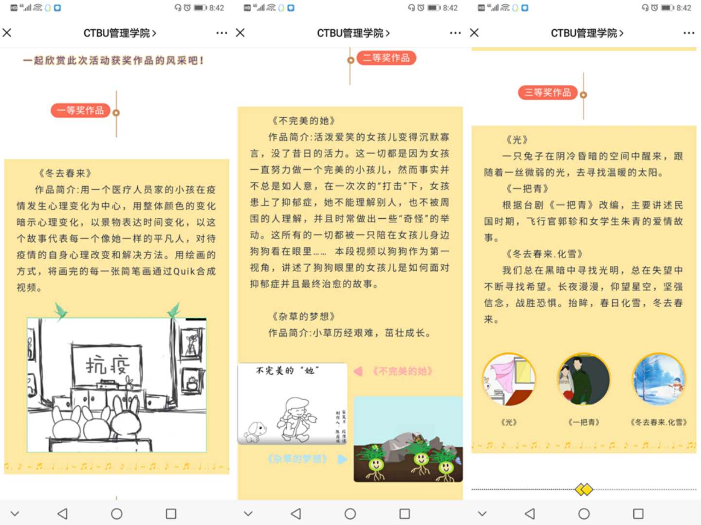 本次心理Flash视频制作活动以“心印暖阳 ‘帧’显阳光”为主题,面向全校员工广泛征集作品,受到了各学院员工的广泛关注,大家纷纷提交精心制作的作品,积极响应参与活动。经过激烈的角逐,《冬去春来》《光》《一把青》等十个稿件脱颖而出,赢得了难能可贵的决赛机会。在整合初赛得分、评委打分及线上投票多个指标过后,作品《冬去春来》最终以77.53的分数夺魁。该作品展示了疫情期间居家生活由冬天到春天的转变,表达了对宅家生活疫情阴霾之下冬日的展望与春天的绽放。作品《不完美的她》《杂草的梦想》分别以75.80、74.33的分数位列第二、第三。而《光》《一把青》《冬去春来·化雪》获得了三等奖。至此,经历了1个月的一竞技官网第十六届“心印暖阳 “帧”显阳光”心理flash视频制作比赛活动圆满结束。